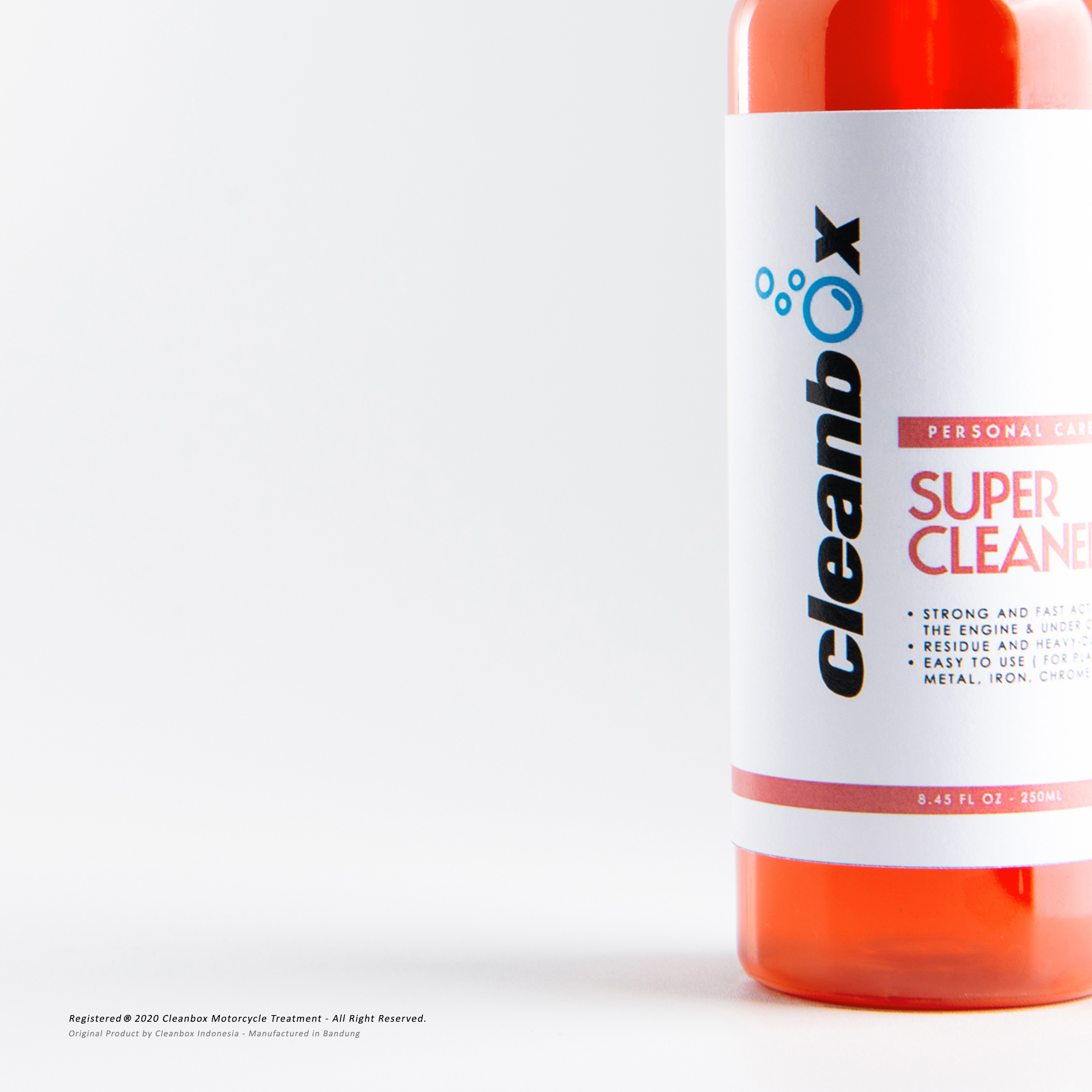 Super Cleaner is a degreaser to bind and dissolve stubborn dirt, suitable for cleaning light to heavy dirt in the engine areas and its surroundings without leaving a white residue. It safe to use on plastic, chrome, metal, iron and rubber parts.