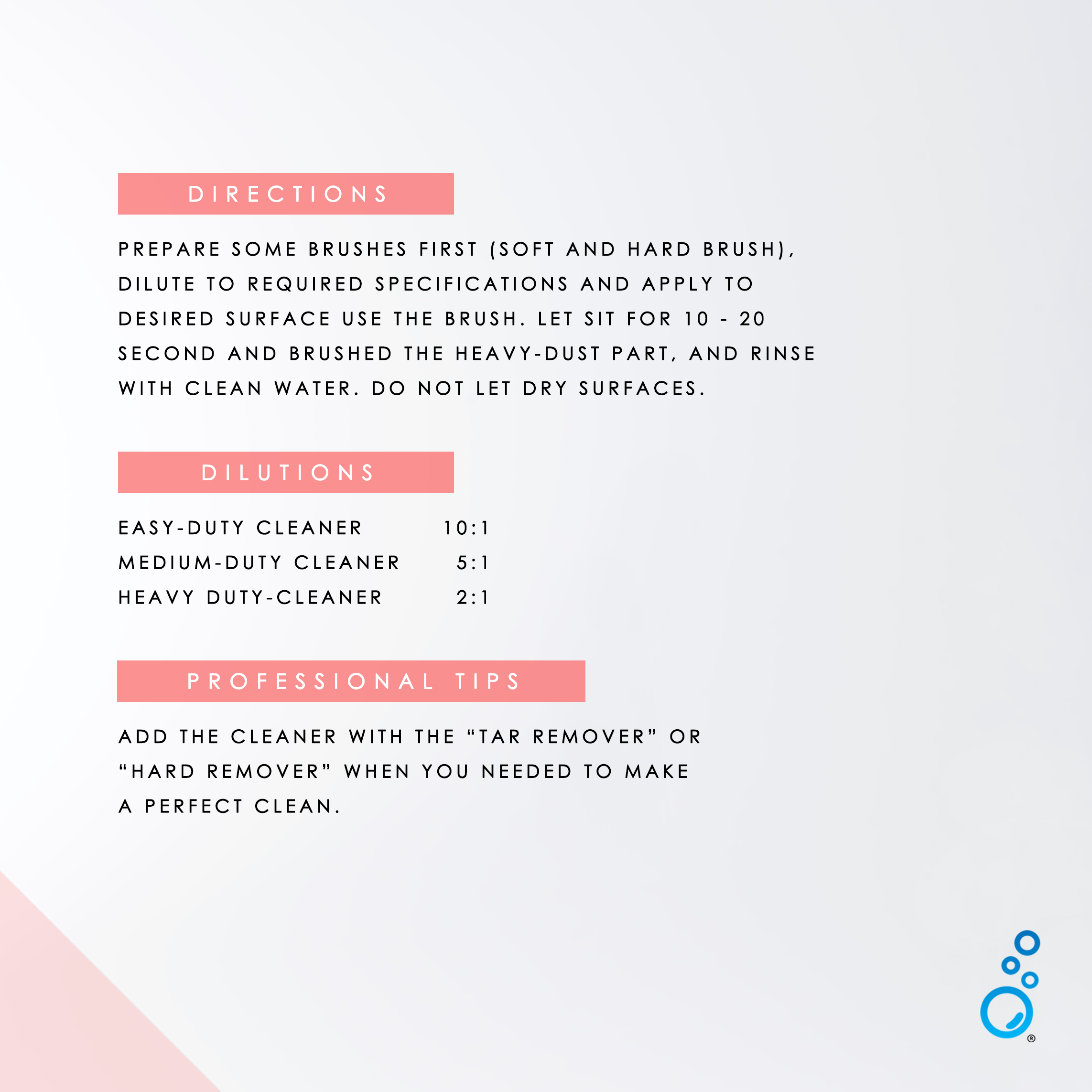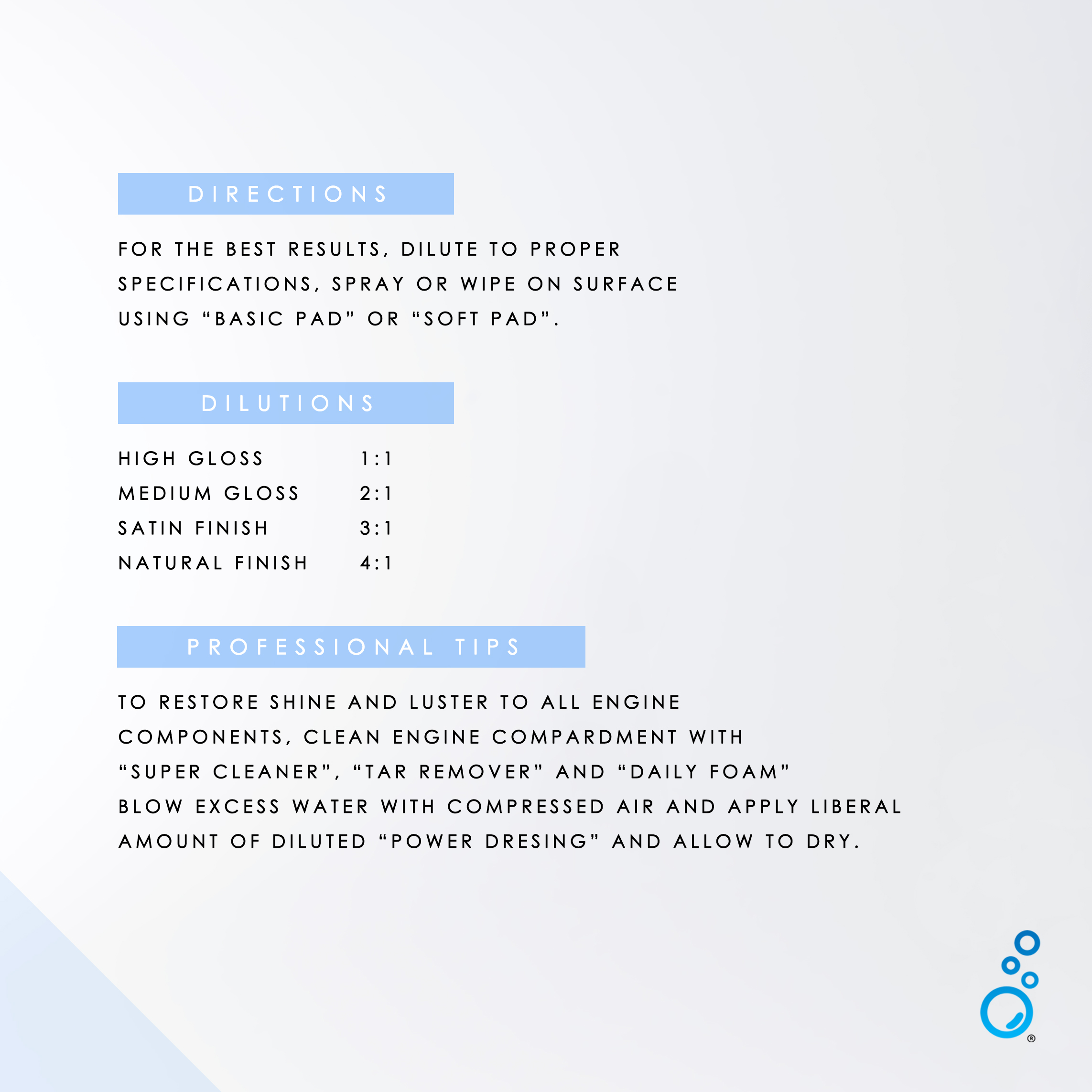 Super Cleaner is a degreaser to bind and dissolve stubborn dirt, suitable for cleaning light to heavy dirt in the engine areas and its surroundings without leaving a white residue.