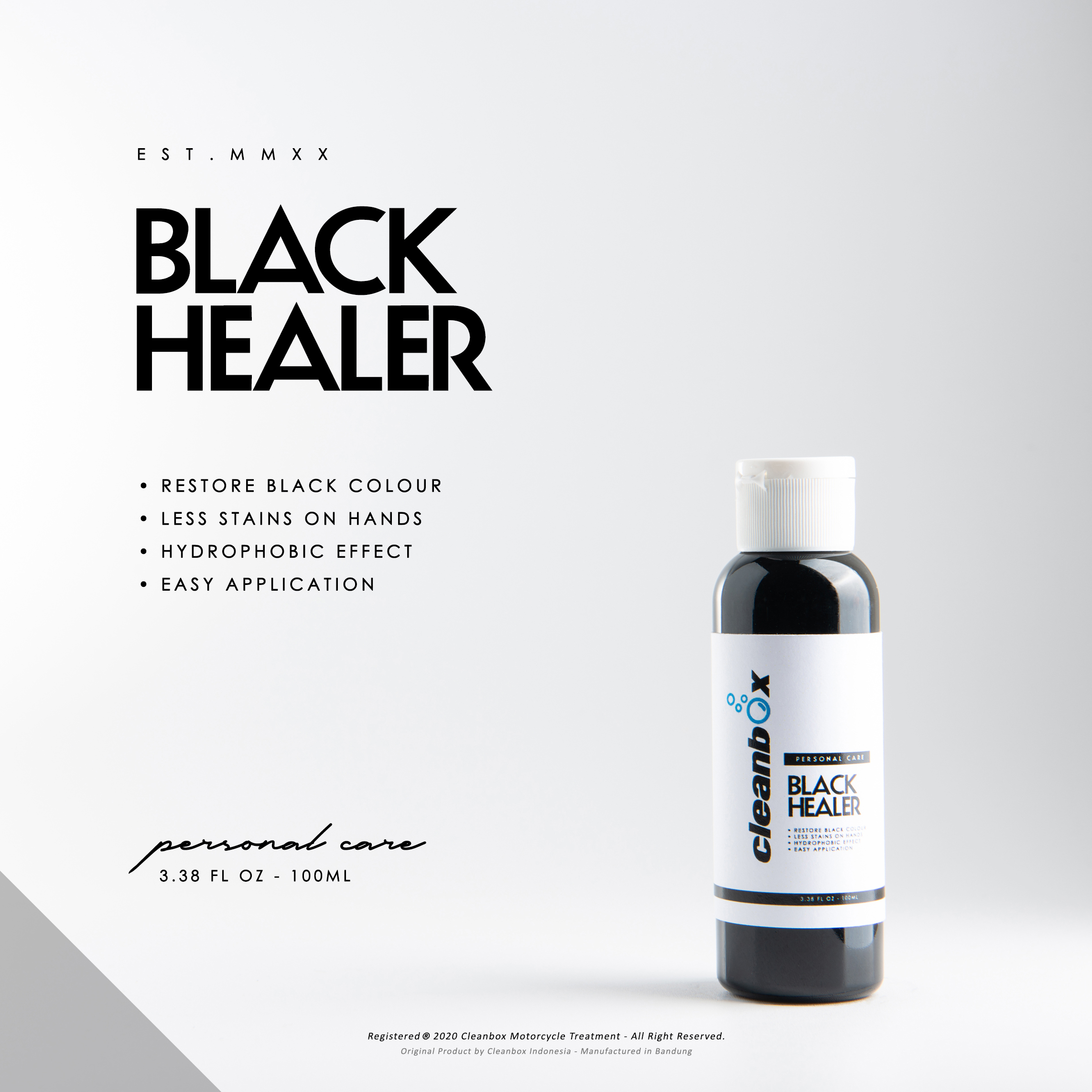 Black Helaer is a product that used for restoration a dull black colour on the rough body on the motobike. It doesn’t leave stains on the hands. It is temporary and contains hydrophobic effect.