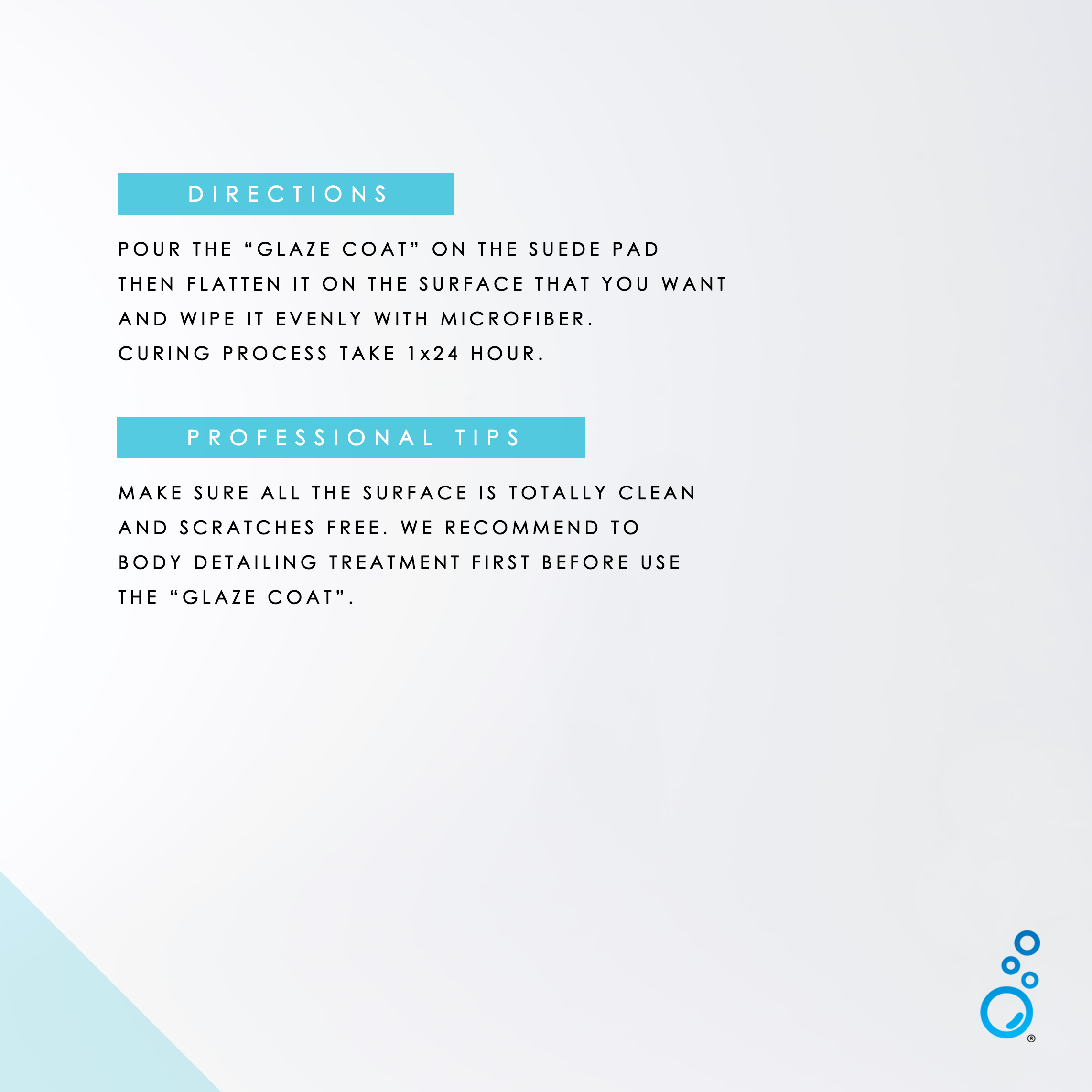 Glaze coat is a coating product which has been tasted with custom designed quality for motorbike, can be applied for glossy and matte body, rims, windshield and glass/mirror. It has a very high protection for the daily use.