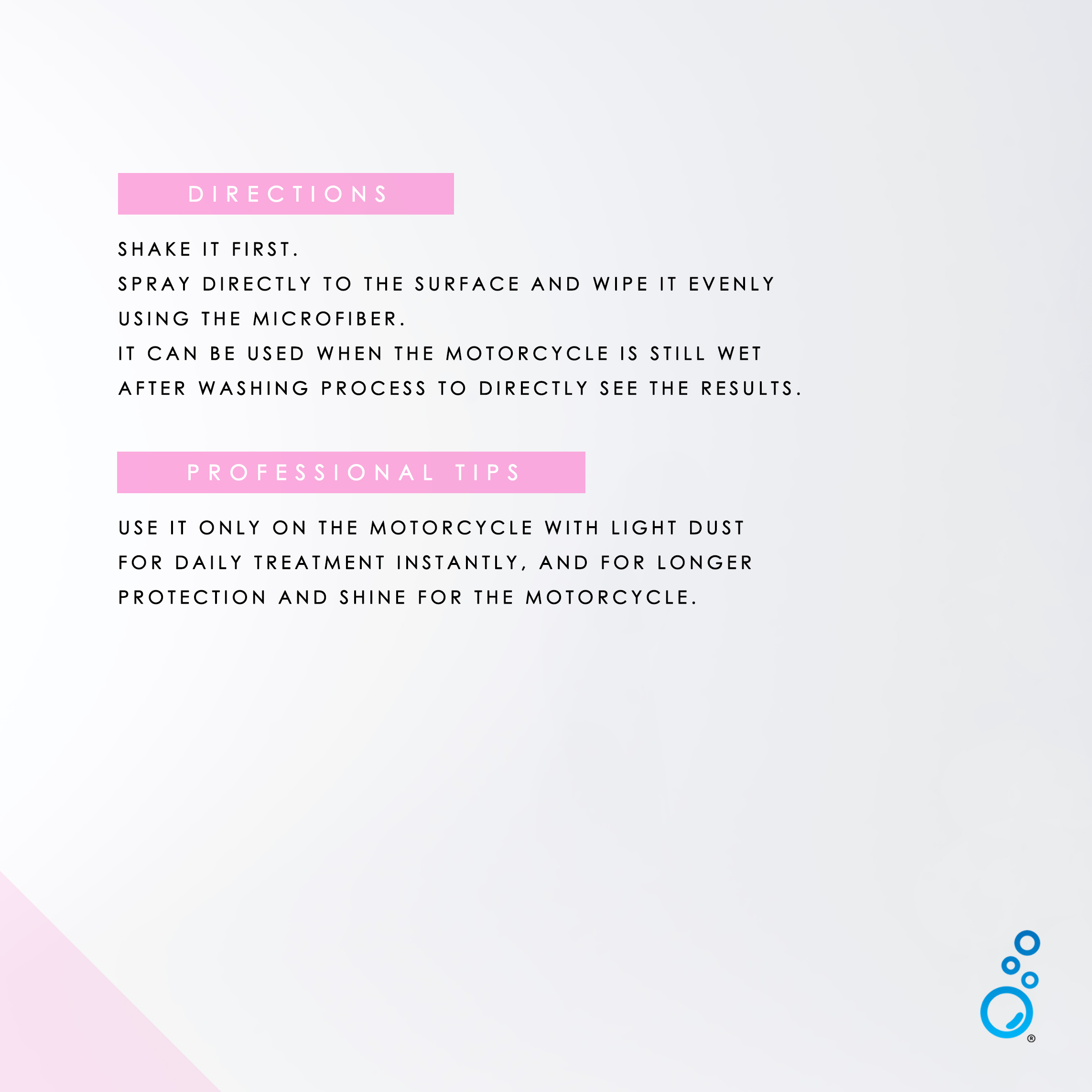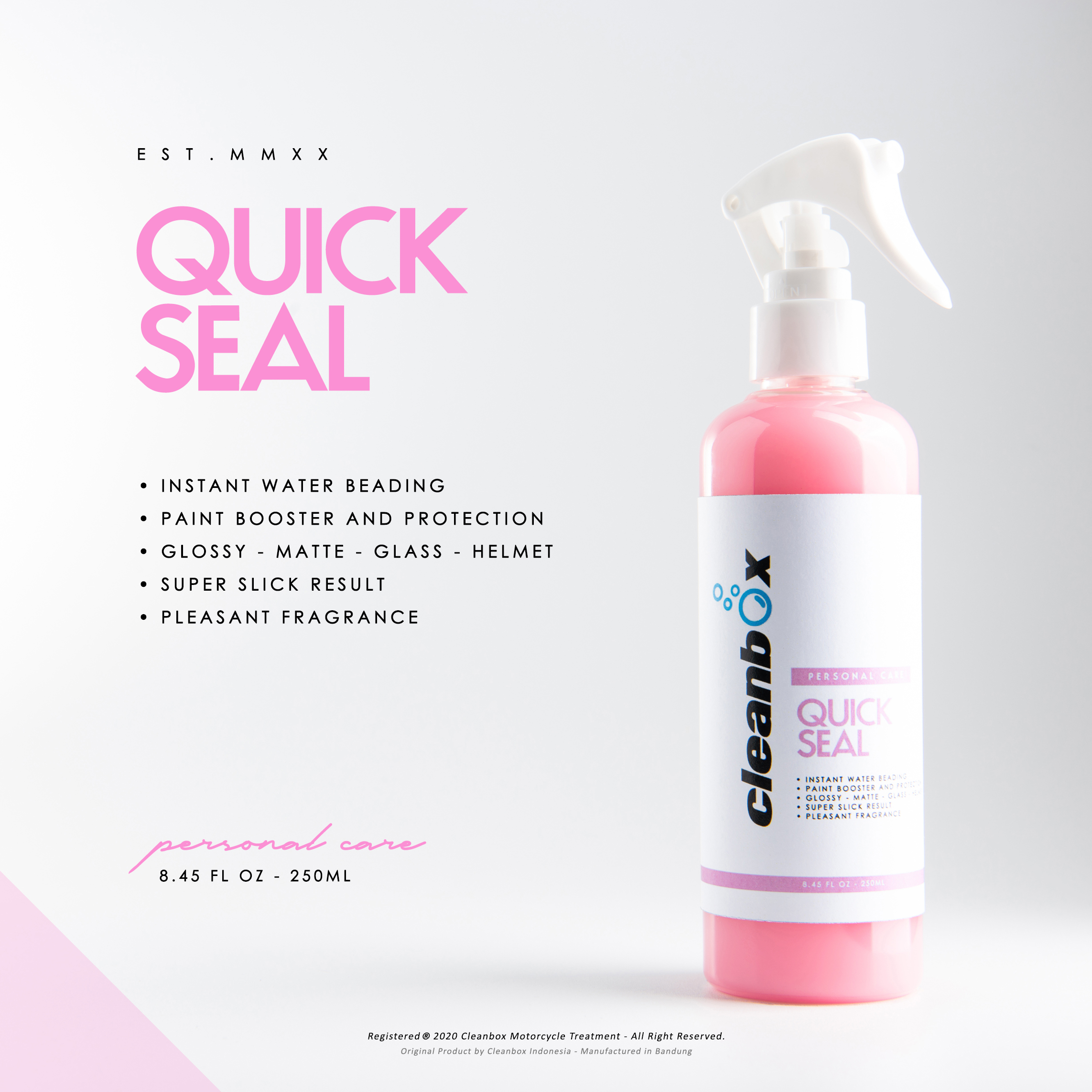 Quick seal is an instant care product for glossy and matte body with waterbased spray to up the shine/glow and it also give a deep colour and hydrophobic effect instantly.